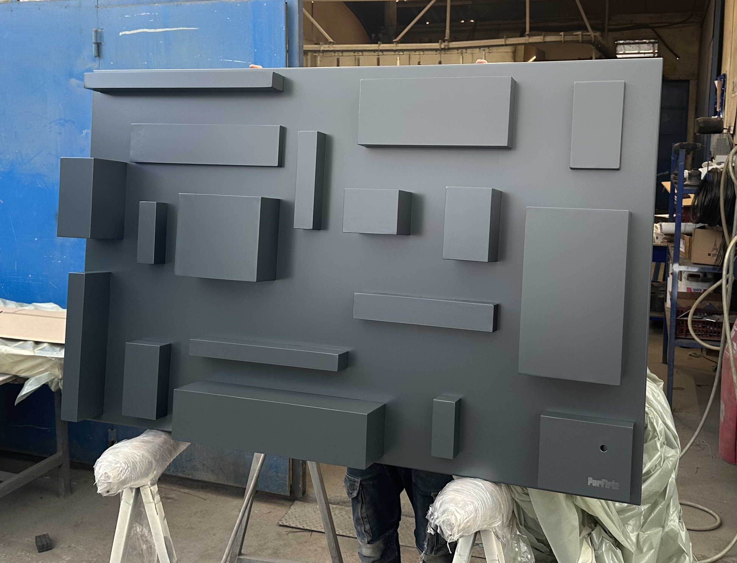 Votre espace mérite une œuvre qui lui ressemble. PORFIRIO Steel réalise des tableaux sur-mesure pour les entreprises : couleur au choix, dimensions adaptées, pièce unique signée.