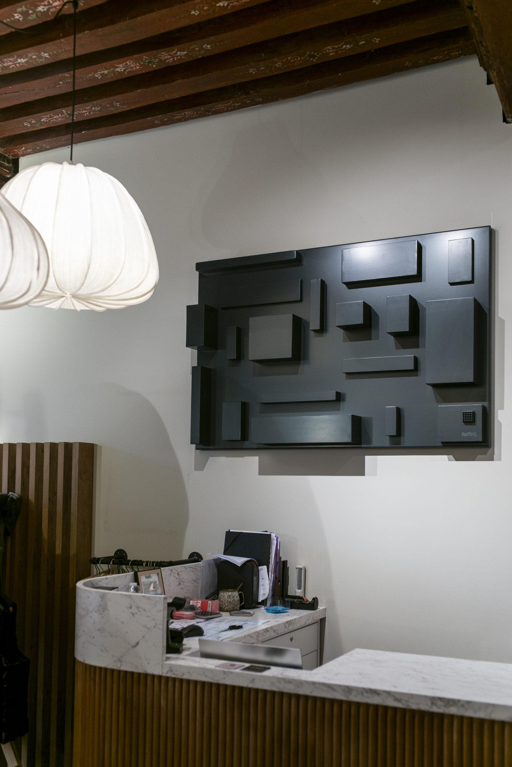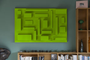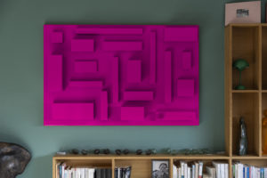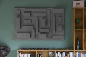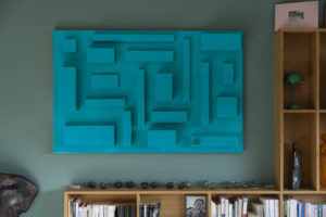 Des formes simples. Des lignes pures. Unicolores. Comme les sculptures de mon père, dépouillées de tout artifice mais qui racontent tant d’histoire. Comme leur amour pour moi : droit, sans concession. Pas de courbes, pas de fioritures. Seulement des géométries franches, en mémoire de leurs mains de tailleur de pierre, et de leur départ du pays natal, le dos droit, la tête haute. Et puis, ces montagnes… Ces angles qui rappellent les Vosges, mes Vosges, celles qui m’ont vu grandir et qui, aujourd’hui, veillent sur mon travail.